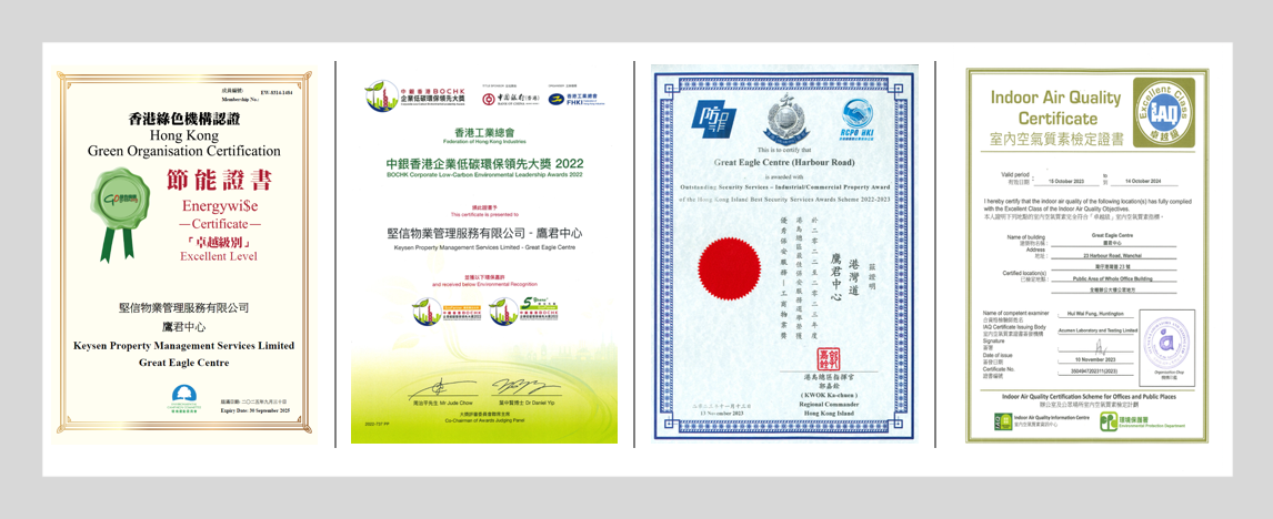 | 室內空氣質素檢定證書 (卓越級) 2023-2024 | 環境保護署 | 2023-2024 |