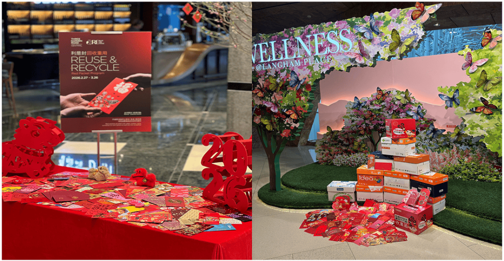 Our managed properties, including Three Garden Road, Langham Place, and Great Eagle Centre, have participated in the “Lai See Packet Reuse and Recycle Programme” organized by Greeners Action for many consecutive years. This year’s campaign has concluded successfully, with over 337 kg of Lai See packets collected – a strong testament to the support of our tenants and stakeholders for resource circularity.